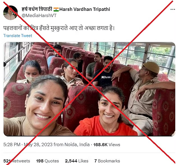A picture of detained wrestlers who were marching towards the new Parliament building on 28 May is going viral on the internet. In the picture, wrestlers Vinesh Phogat and Sangeeta Phogat can be seen smiling.