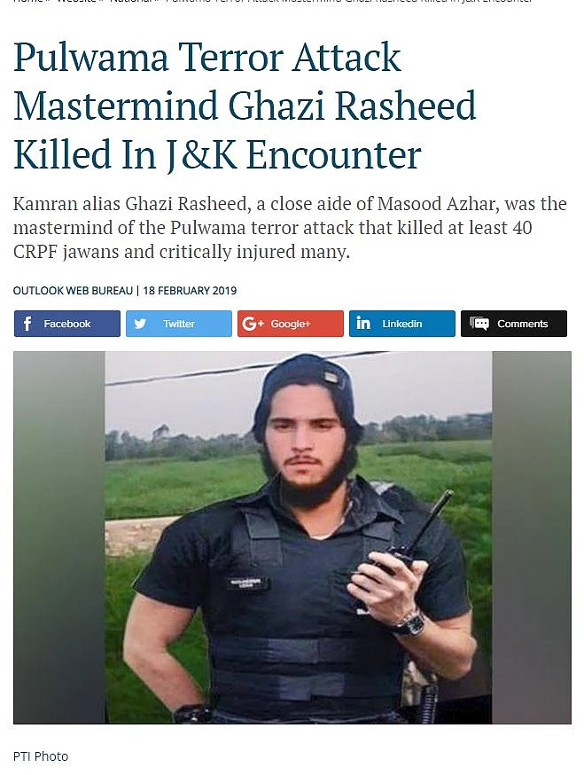 On Monday, 18 February, morning, it was reported that two Jaish-e-Mohammed (JeM) terrorists, including Abdul Rasheed Ghazi alias Kamran, who is believed to be the mastermind behind the Pulwama attack, have been gunned down in an encounter.