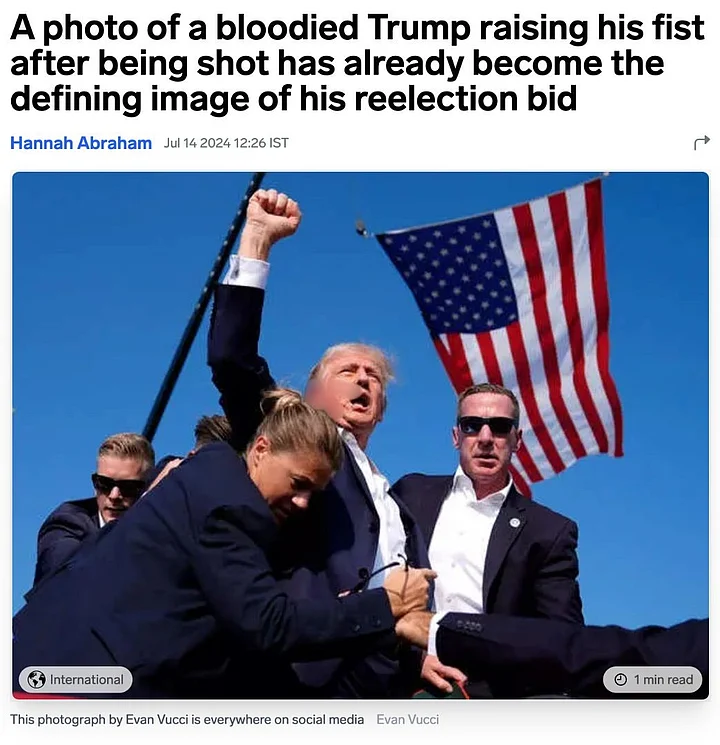 One of these reports credited the image to one 'Evan Vucci', whose Instagram account has a series of photos from the moment Trump was shot at.