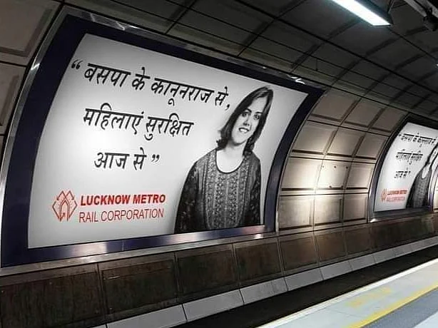 A photo of hoardings at a metro platform which carry Hindi text, "With BSP's rule of law, women are safe from today" is being shared on social media, to claim that the posters had been put up along the Lucknow Metro line, pre-emptively celebrating the Bahujan Samaj Party's (BSP's) victory in the upcoming Uttar Pradesh elections.