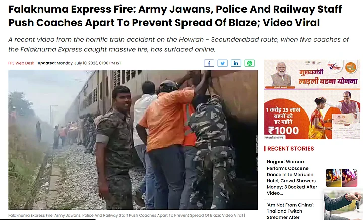 How did we find out the truth?: We performed a relevant keyword search which led us to news reports from 10 July about Falaknuma Express accident.