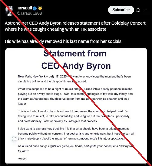 5. Fake Statements Attributed to Astronomer CEO Andy Byron Go Viral