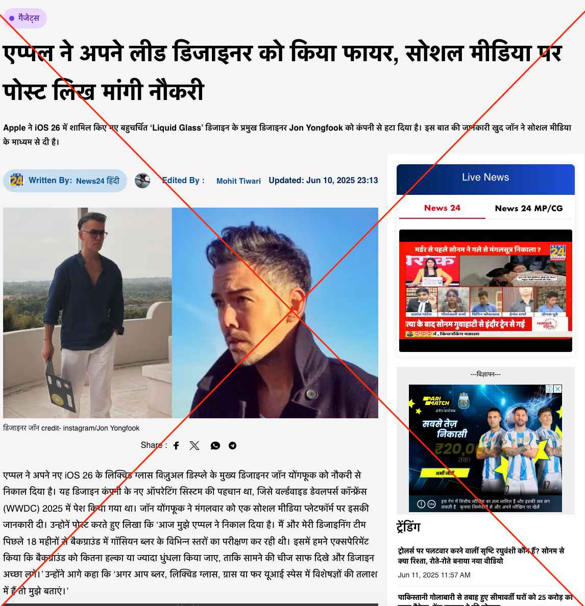 2. Media Outlets Fall For Satire by X User About Being Fired From Apple