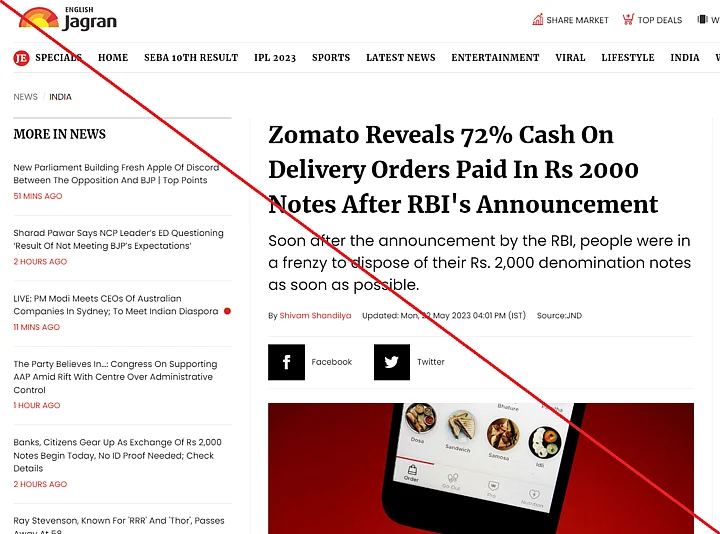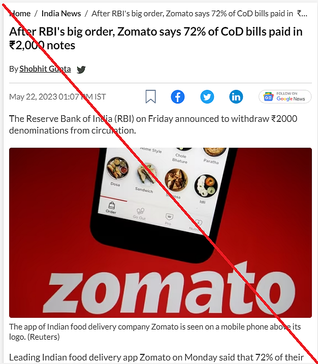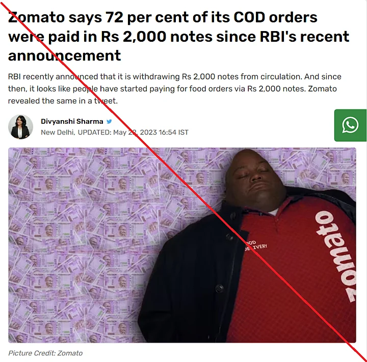 Conclusion: Several media organisations fall for a joke shared on Zomato's official Twitter handle which showed an edited picture of a man lying on a pile of Rs 2000 notes.