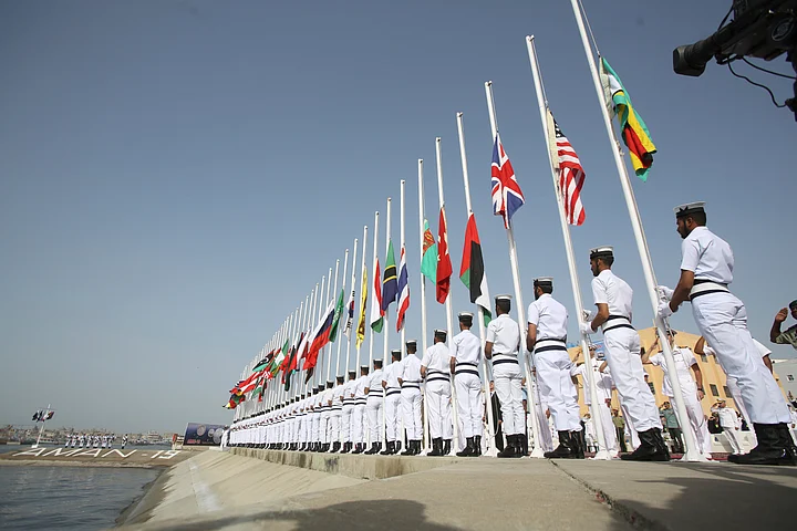 Representatives from the navies of 45 nations, including the United States, Britain and Japan, are participating in the exercise titled "Aman" or peace, which began on Friday in the Northern Arabian sea.