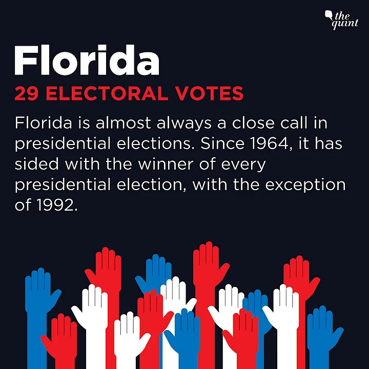 Since 1992, when it voted for Republican George H Bush while Democrat Bill Clinton won the presidential race, the Sunshine State has correctly predicted the winner consecutively in the last six elections. In fact, Florida has backed the losing candidate only twice since 1928.