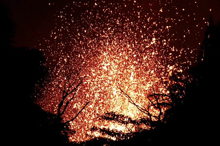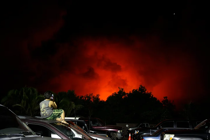 - 07/07The sky turned red from lava flows in the Leilani Estates subdivision near Pahoa, Hawaii on Friday, 18 May. (Photo: AP)