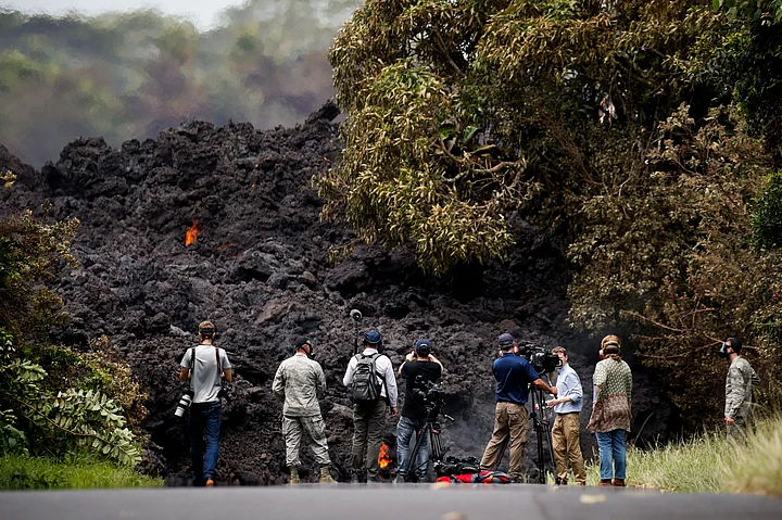 - 02/07The first causality was reported on 19 May, A homemaker’s leg was splattered with lava while standing on the third-floor balcony of his home.(Photo: AP)