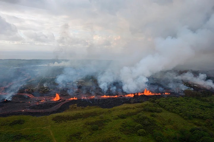- 03/07Kilauea, one of the world’s most active volcanoes, began extruding red-hot lava and sulfuric acid fumes on 3 May. (Photo: AP)