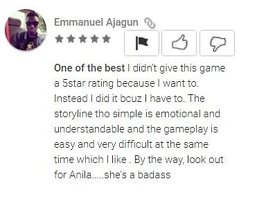 Reviewing the game on Google Play, a player said: