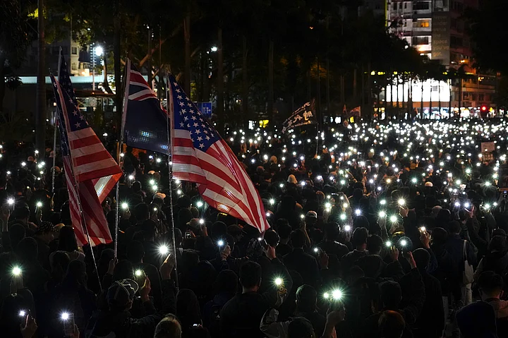 Chanting “Fight for freedom” and “Stand with Hong Kong,” the sea of protesters formed a huge human snake winding for blocks on Hong Kong Island, from the Causeway Bay shopping district to the Central business zone, a distance of more than 2 kilometers (1 1/4 miles). It was one of the biggest rallies in months, and remarkably peaceful.