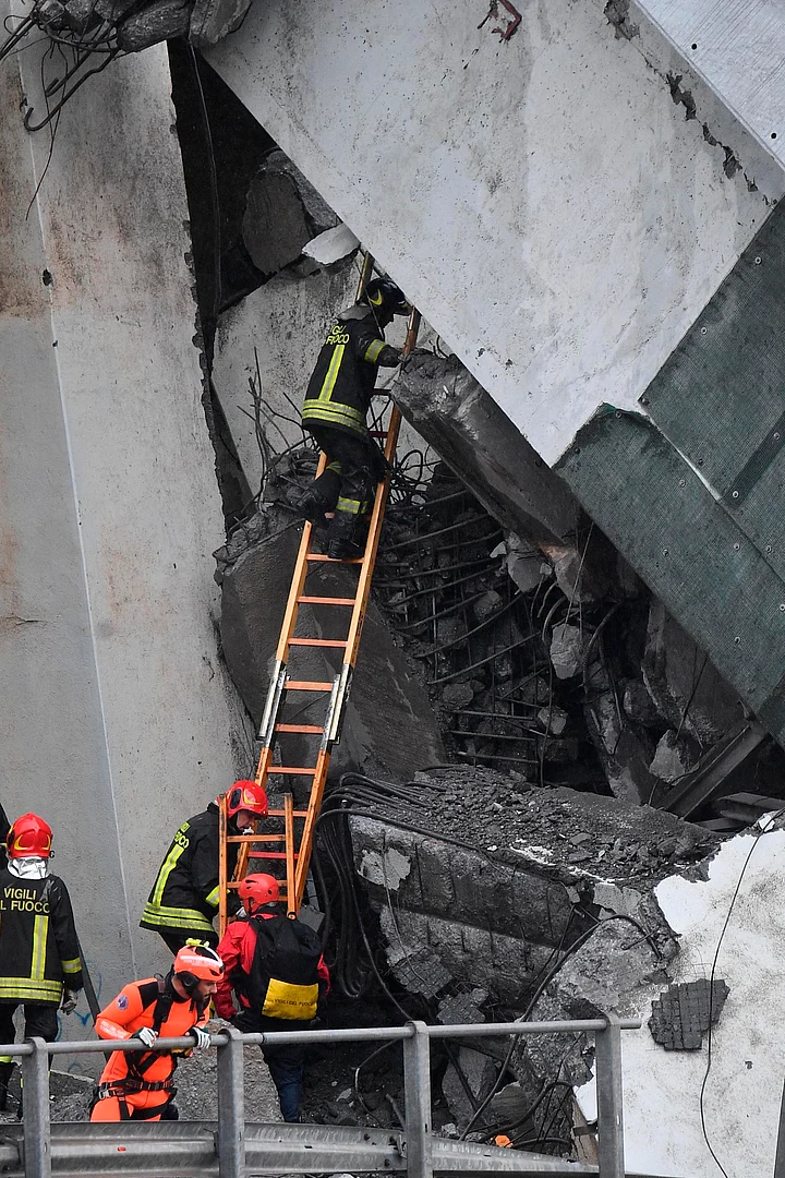 Rixi told Sky TG24 that, as he was speaking, emergency response crews were recovering a body from an automobile that was suspended on a central part of the bridge.