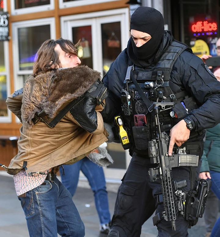 Scotland Yard confirmed that one male suspect wearing a hoax bomb vest had been shot dead at the scene.