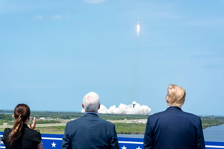 US President Donald Trump, witnessing the launch Saturday of the SpaceX Falcon 9 rocket on a historic first private crewed flight into space, said: