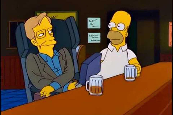 Stephen Hawking has lent his voice to four episodes of American sitcom, The Simpsons. Here’s one episode where he tells the residents of Springfield that their “Utopia, which is more like a fruitopia will never succeed”.