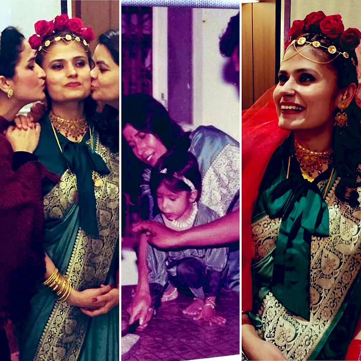 I wanted to wear a saree from her trousseau for my hastily put together wedding reception—just before the COVID-19 pandemic hit the world and we all began living in our pyjamas—much to my mother's surprise. Since this was not a 'real' wedding, thanks to the din of disapproving voices leading up to the day, my mother was concerned that I was "making do" with old clothes and wasn't really happy.