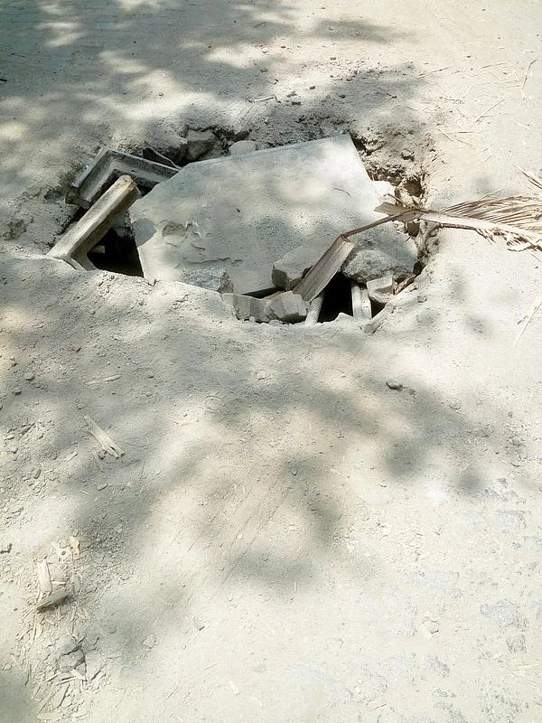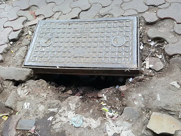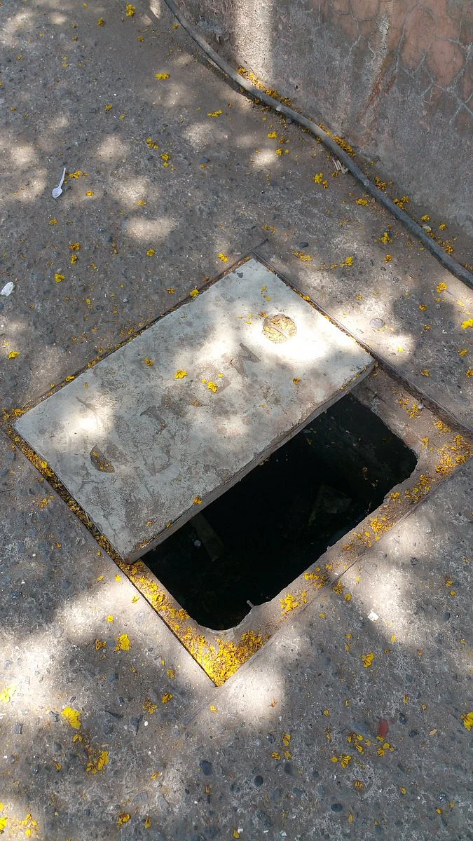 - 03/03A drain caves in, slowly creating a manhole at Dadar. (Photo: Pallavi Prasad)