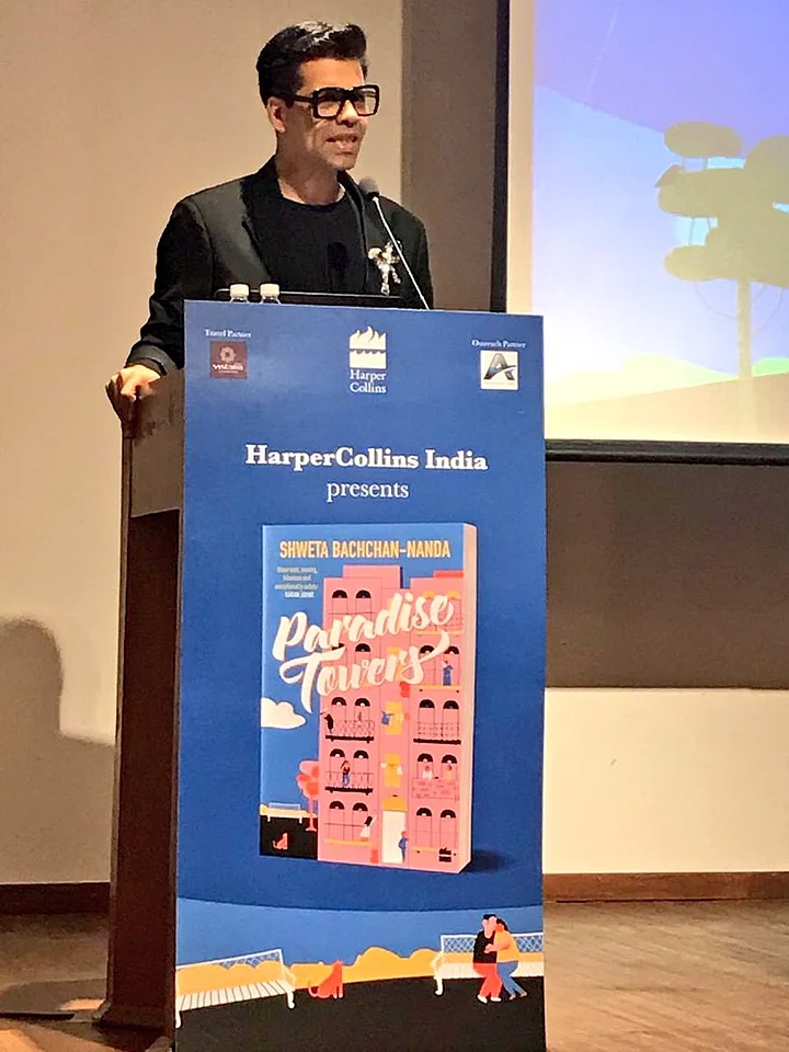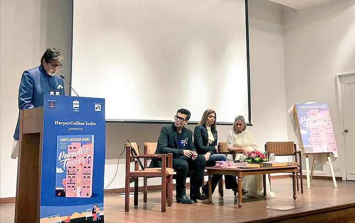 Shweta Bachchan-Nanda released her debut novel Paradise Towers in Mumbai on Wednesday, 10 October. Published by Harper Collins, the slim novel revolves around the motley residents of a posh community building in Maximum City. The event was hosted by producer-filmmaker Karan Johar with parents Amitabh and Jaya Bachchan launching the book. Big B also read an excerpt from the book and critic-author Raja Sen talked to Bachchan-Nanda about the book.