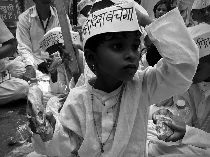 - 02/03Children of farmers who committed suicide protest at Jantar Mantar. (Photo: Meghnad Bose/The Quint)