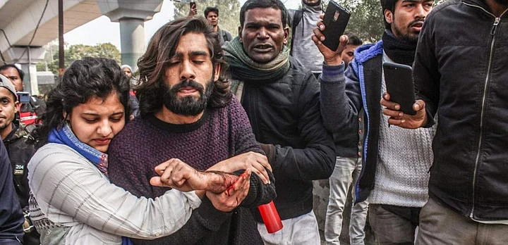 Shadab, a student at Jamia, was injured by a bullet shot at him outside the Jamia campus.