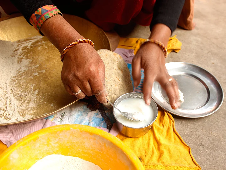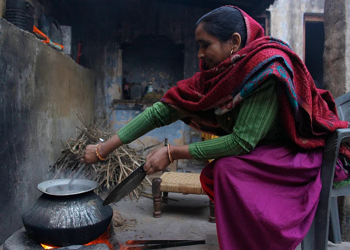 - 02/03Kavita in the midst of preparing a meal for two: her father-in-law and herself. (Photo: Kashish Badar)