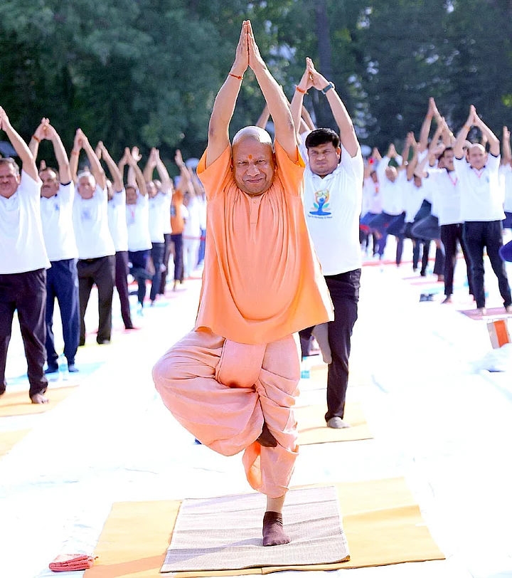 Uttar Pradesh Chief Minister Yogi Adityanath doing a Yoga asana.