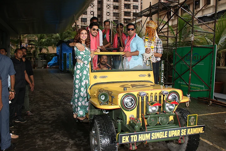 - 04/10Sidharth and Parineeti pose in a jeep full of gangsters.(Photo: Yogen Shah)
