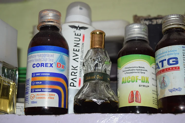 - 02/03Cough-syrups crowd Jabbar’s shelf of TB-related paraphernalia. (Photo: The Quint/Pallavi Prasad)