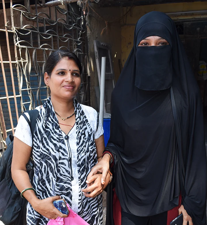 - 03/03Renu, the field coordinator with a PATH-affiliated NGO and Saba whatsapp regularly. Over six months, they have built a strong friendship, complete with code language to talk about medicines and health updates. (Photo: The Quint/Pallavi Prasad)