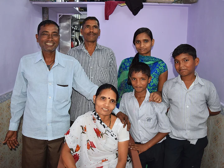 - 03/03(From L to R) Urmila with her brother-in-law, husband and three children in her 100 square feet flat. (Photo: The Quint/Pallavi Prasad)