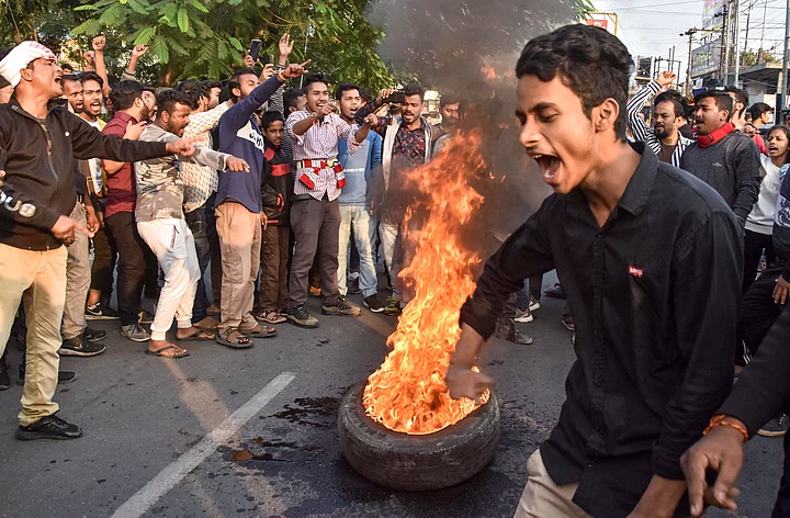 Protesters burnt tyres and blocked national highways to stop movement of vehicles in various parts of Assam.