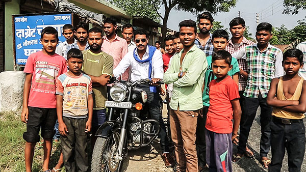 ठीक उसी वक्त धड़धड़ाती मोटरसाइकिलों पर सवार युवाओं का एक दल गांव में घुस आया. दूर से ही उन्होंने नारा लगाया- भीम आर्मी, जय भीम. काली पैंट, सफेद शर्ट और गहरे नीले का दुपट्टा गले में लपेटे, नौजवानों का लीडर मोटरसाइकिल से नीचे उतरा. कड़क मूंछ, बांके और कसरती बदने वाले इस नौजवान का नाम गांव के लोगों को मालूम नहीं था. पता चला कि इस नौजवान का नाम है- चंद्रशेखर.