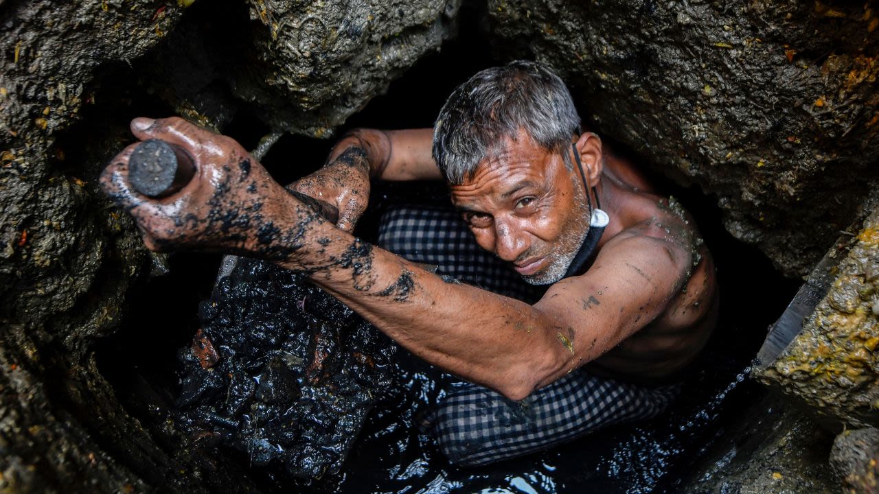 The sewer cleaner is given little or no protective gear at all, and therefore doesn't get counted officially as a 'manual scavenger'.