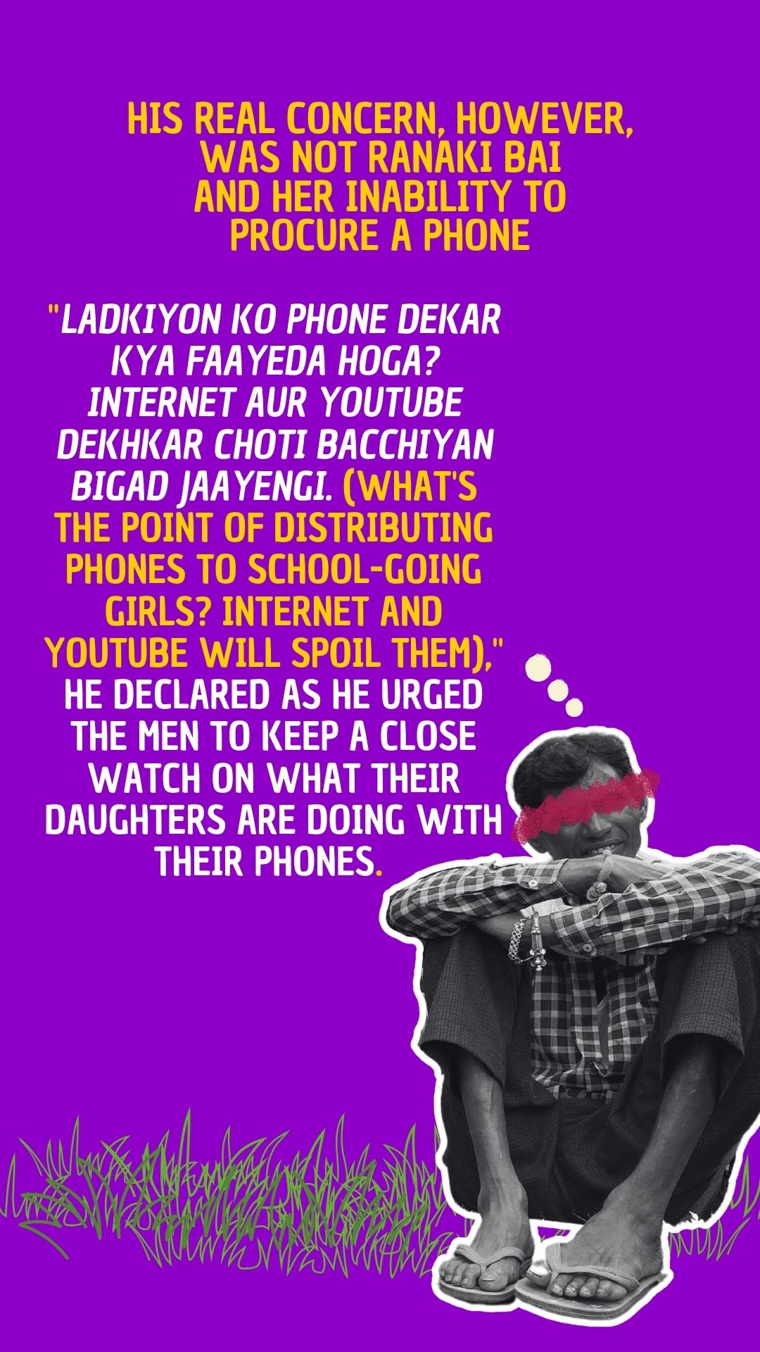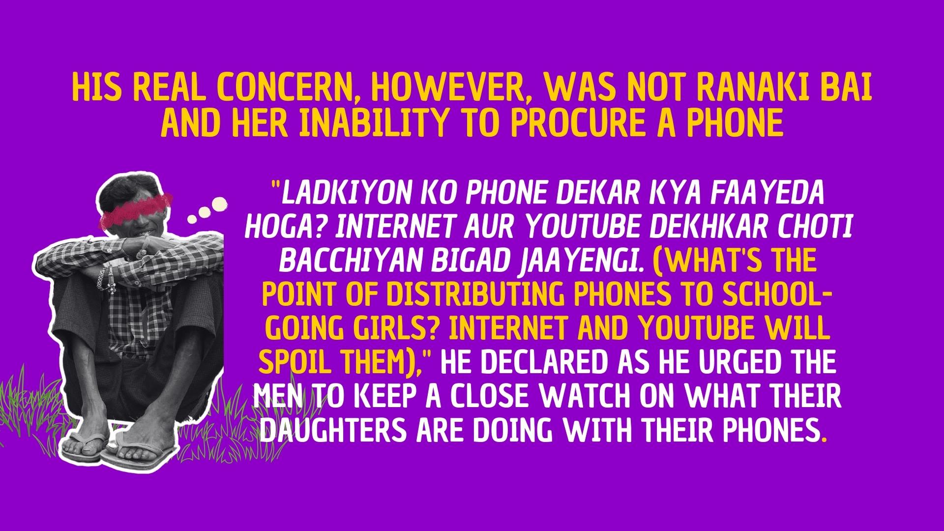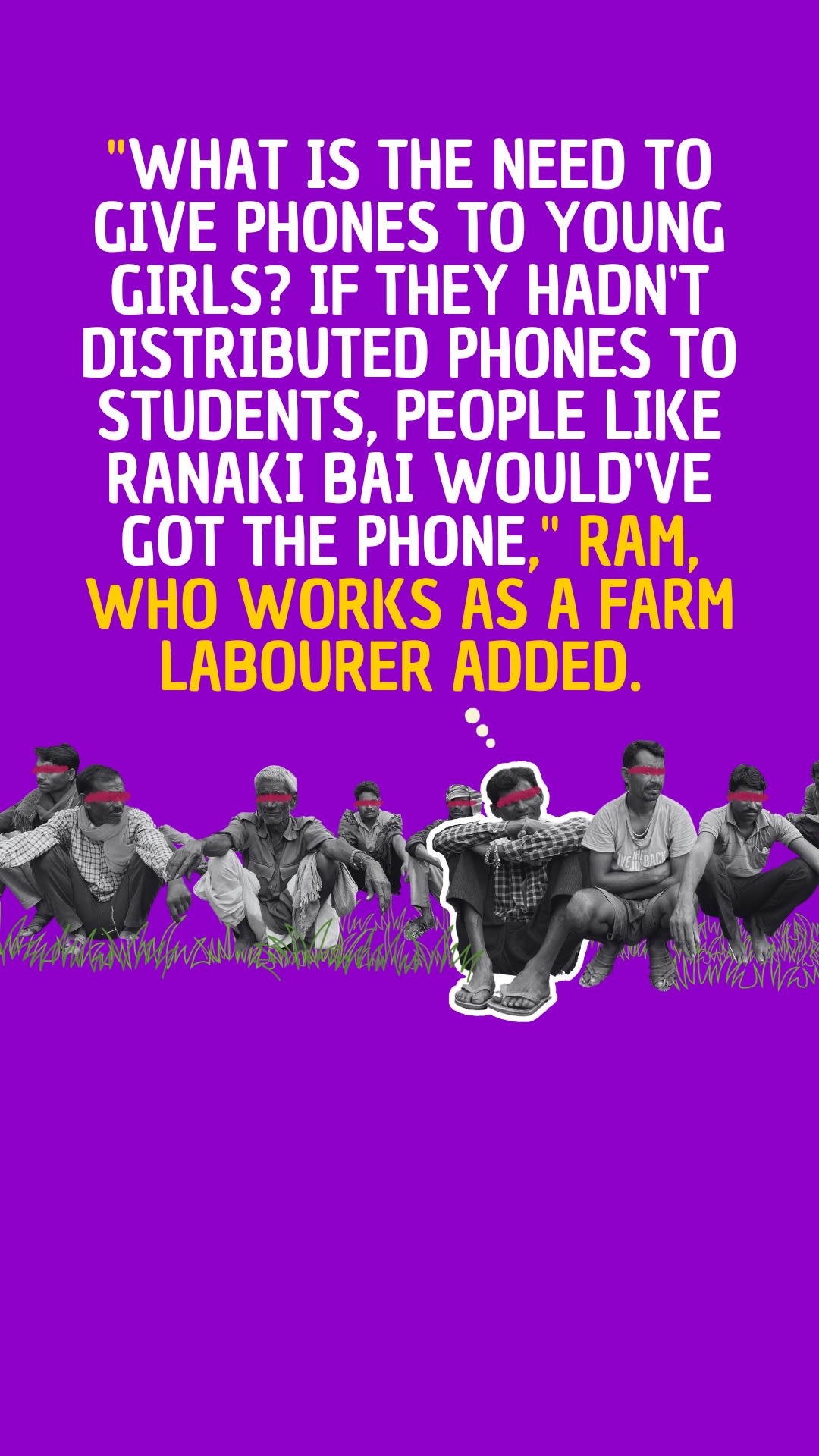 This, however, isn't just a harmless banter among classmates. Adult men in Rajasthan also feel that the scheme shouldn't have been for women alone. "Why didn't men get the phones? Do they not need quick access to their pensions or other government schemes?" said Dharam Chand, another one of Ranaki Bai's neighbours present at the gathering.