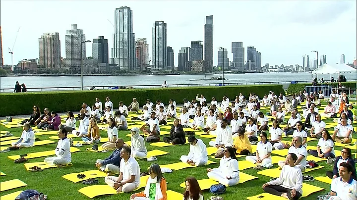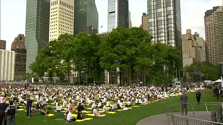 Participants at the Yoga Day event led by PM Modi at the UN Headquarters in New York.