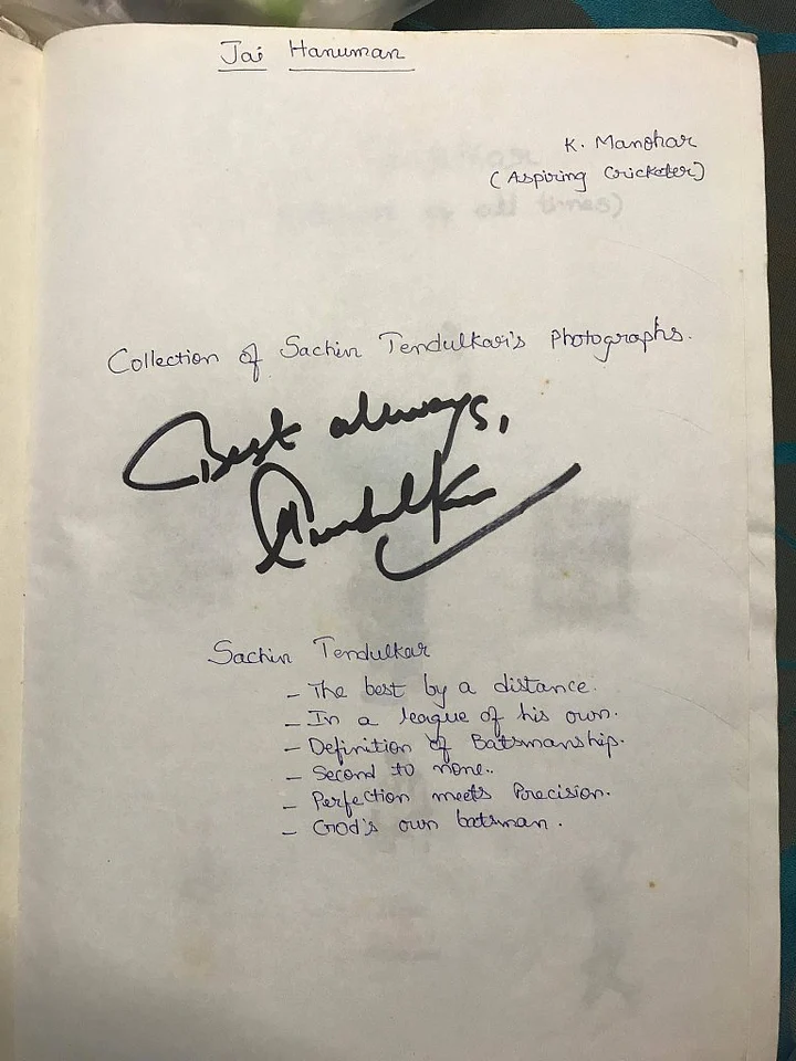 For years, Manohar had registered diary entries about Sachin, in a labour of love that became a handwritten book celebrating the Little Master’s exploits. At around 150 pages long, it was quite the fan feat.