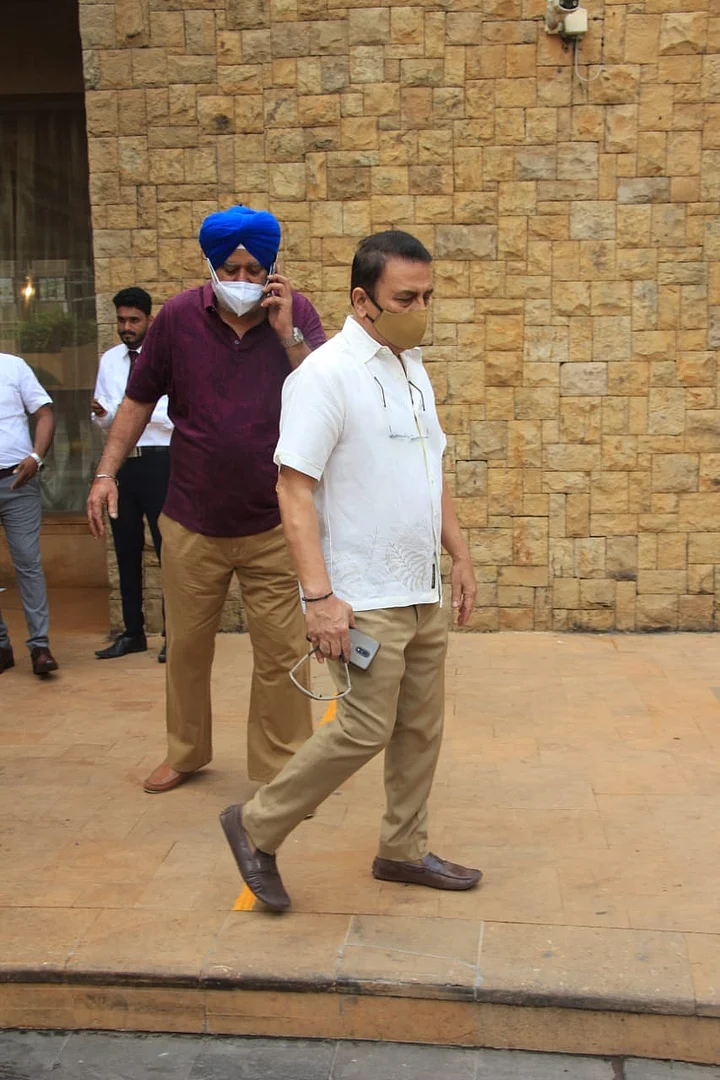 Indian cricket commentator and former cricketer Sunil Gavaskar with former team mate, Balwinder Singh Sandhu.