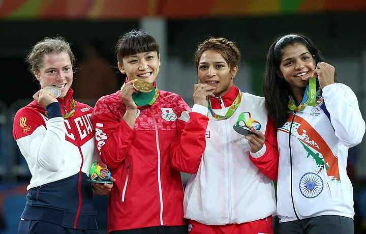 Sakshi Malik of Haryana won bronze medal for India at the Olympics in Rio De Janerio in the freestyle 58 kg category