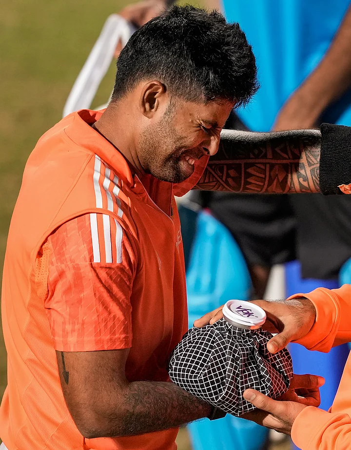 Ishan Kishan got bitten by a bee on the back of his head, but it was Surya's injury that seemed a bit more serious with the batter getting hit on his right wrist. He looked in considerable pain and put an icepack on the area before getting it strapped and ending his nets session.
