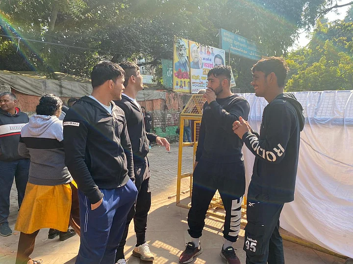 Wrestlers Arrive at Sports Minister's Residence