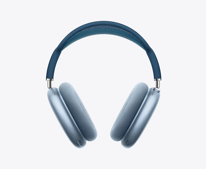 AirPods Max sports knit mesh canopy, spanning the headband, that is made to distribute weight and reduce on-head pressure.