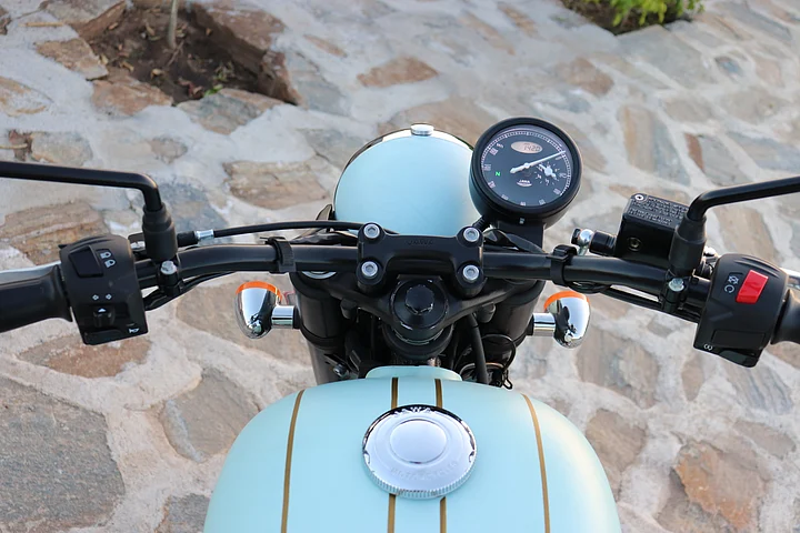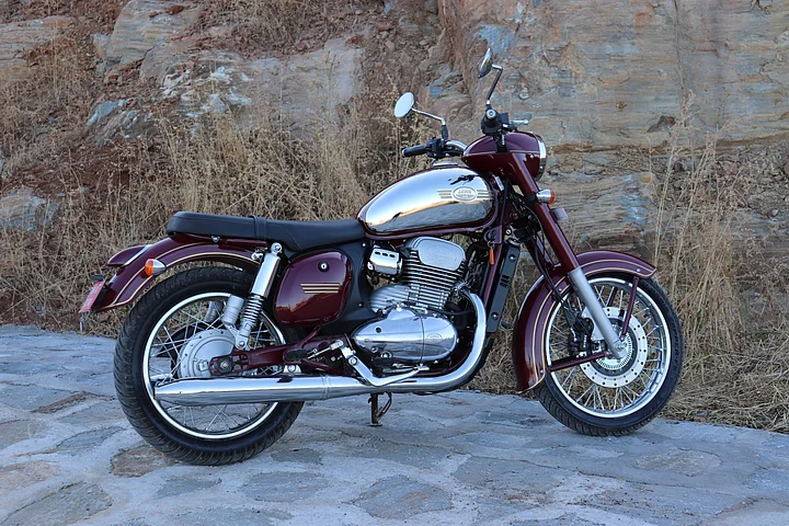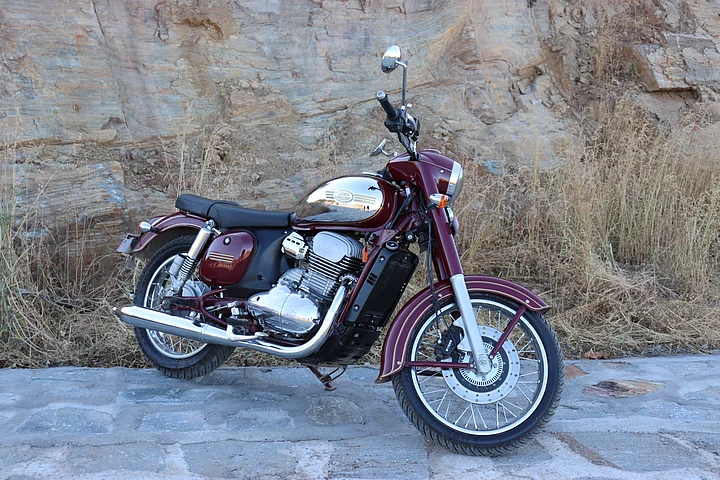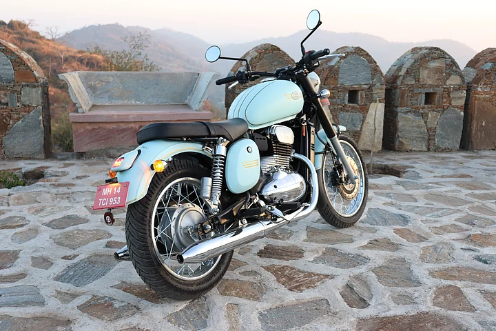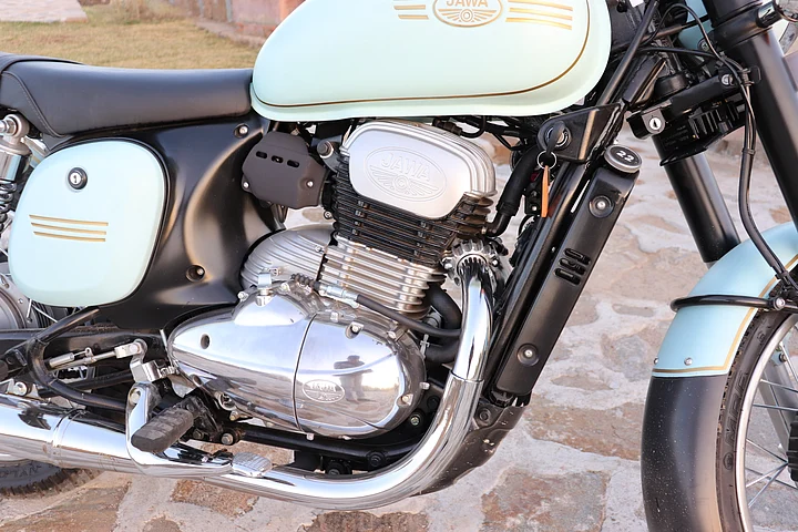 The Jawa comes with a 293 cc single-cylinder engine (based on the Mahindra Mojo), which puts out 27PS of power and 28Nm of torque with a six-speed transmission.