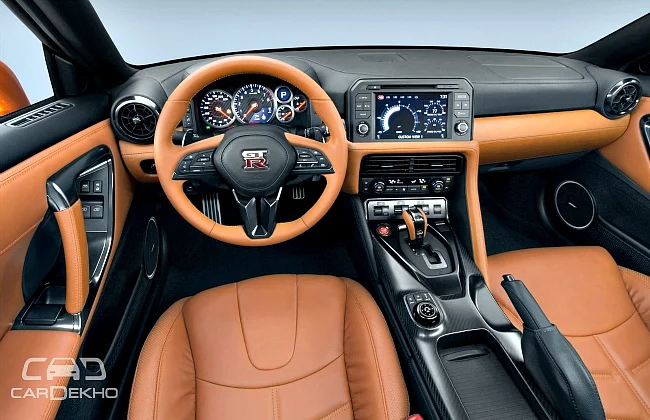 Nissan's mantra here was 'declutter'. A large 8-inch touchscreen infotainment system takes centrestage. It has the usual goodies like Apple CarPlay and Android Auto. The number of buttons on the dashboard have been reduced as well, because Nissan believes you should spend your time inside the GT-R driving and not fiddling with buttons. In case you were wondering, the GT-R is classified as a four-seater!