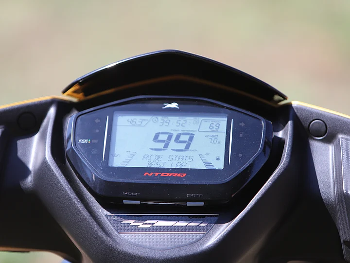 As I reached the fag end of the track during my last lap, I was yearning for more. I then stopped to take a closer look at the distinct features of the TVS Ntorq. I had been riding this scooter in ‘Sport Mode’. This can be switched to ‘Street Mode’ while manoeuvring bottlenecks on the road. That's a useful feature for city traffic.