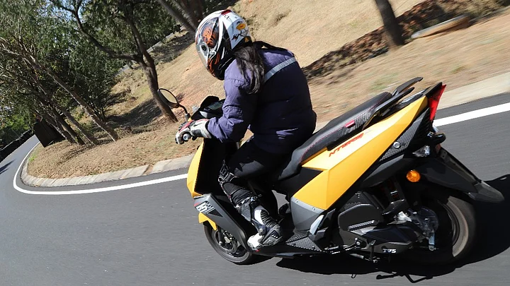 As I went further ahead on the track and took a turn, I was a little unsure of how stable it would be. But, thanks to the meaty 12-inch tubeless tyres and twin shock absorbers, I managed to pull it off with adequate grip. At no point in time did I get a sense of losing control since the tyres held up well to acceleration, steering and braking. However, I kept slipping off from the seat and wished it was a bit more comfortable.