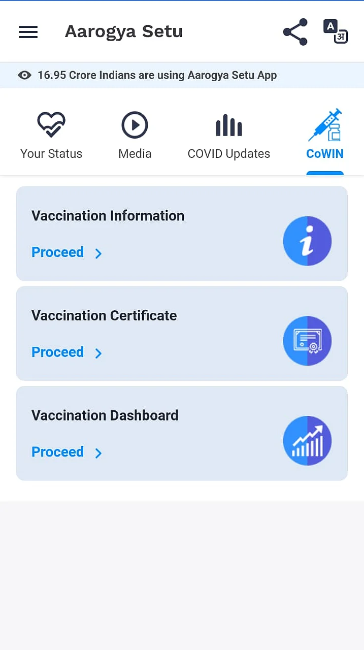 Here’s how to access the Co-WIN section on the Aarogya Setu app.