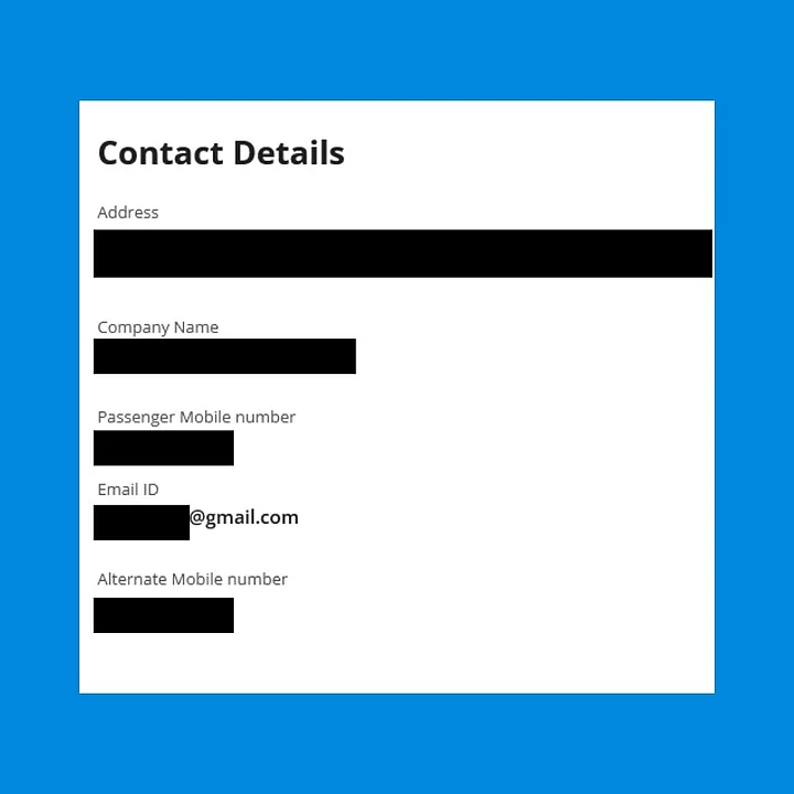 If you have access to someone's PNR and last name, you can usually gain access to their itinerary, which has their contact details. We tested this with three IndiGo travellers and were able to access their addresses, phone numbers, and emails.