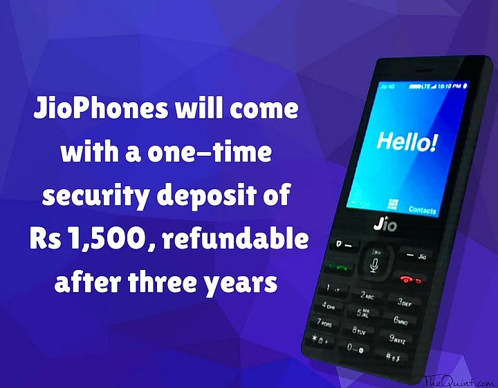 The phone, targeted at 50 crore feature phone users in the country, will be available for pre-booking from 24 August on payment of a refundable security deposit of Rs 1,500. This deposit will be refunded after 36 months on return of the phone, he said, adding that the price of the phone will be "effective zero".