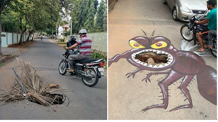 Bengaluru-Based Artist Turns Pothole Into a Menacing Mosquito